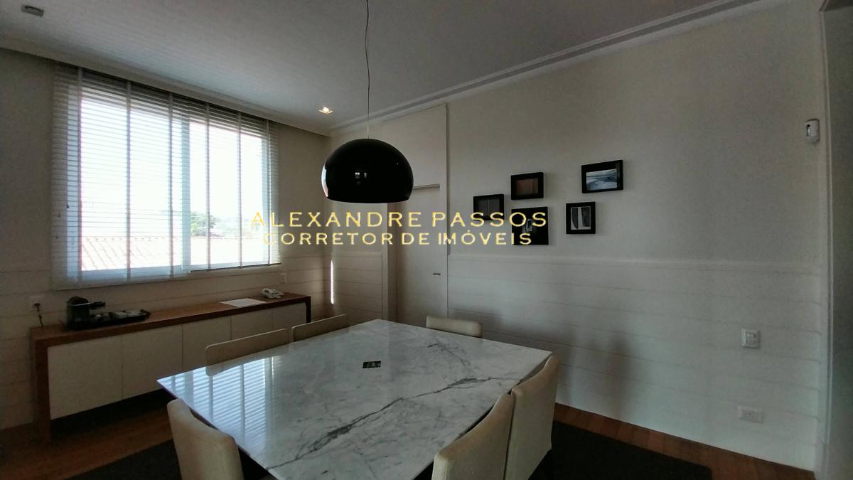 Pé direito alto, lareira, sistema de iluminação, som, e farta iluminação natural.
